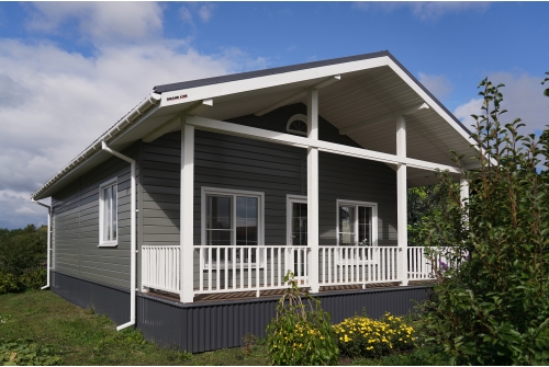 1. При использовании покрытия Colority® Print, «ЭкоБрус GL» достигает максимального сходства с клееным брусом. Надежное скрытое сцепление панелей придает фасаду здания естественный вид.