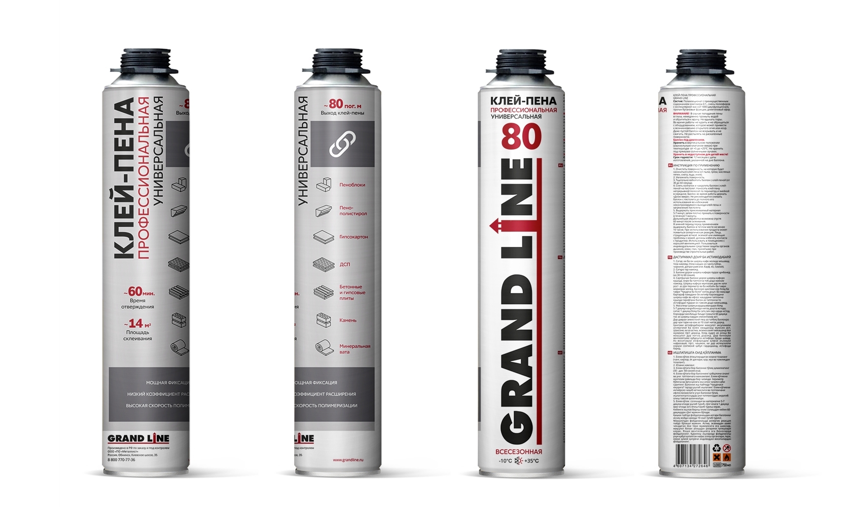 Клей-пена Grand Line — полиуретановая клей-пена с большой скоростью полимеризации, применяется для внутренних и наружных работ. В состав продукта входит пена с низким коэффициентом расширения. Обладает хорошими звуко- и термоизоляционными свойствами.