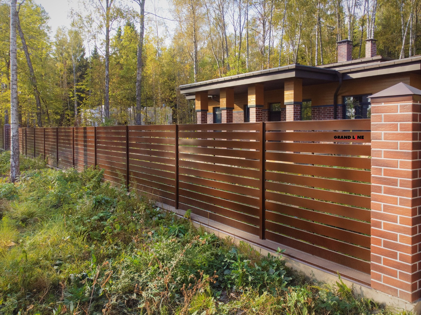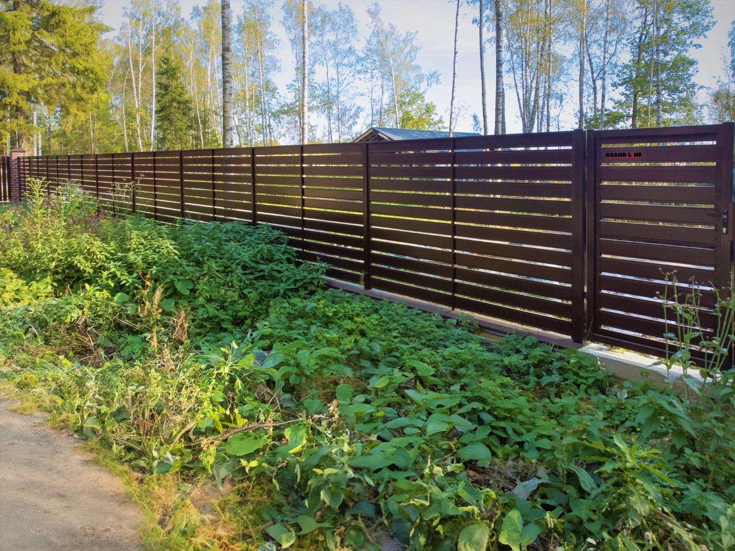 Ламель лицевая 50 забора жалюзи Texas 0.45 PE с пленкой RAL 8017 шоколад в Гусь-Хрустальном