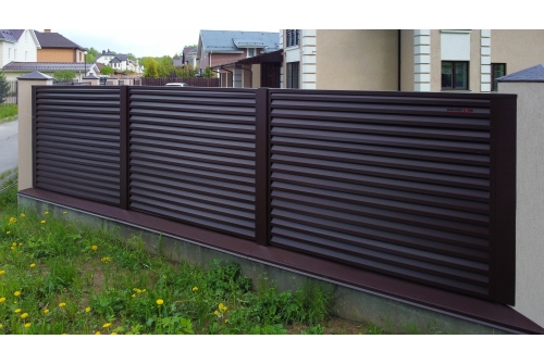 Забор Жалюзи — это секционное ограждение с необычным дизайном. Элементы выполнены из оцинкованной стали с полимерным покрытием.