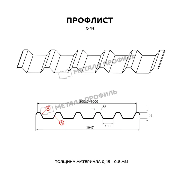 Профлист МЕТАЛЛ ПРОФИЛЬ С-44х1000-A (ECOSTEEL-01-Кирпич-0,5) часто используется в Нижнем Новгороде для оформления профилированного листа. Представляет собой стальной оцинкованный лист с покрытием. Общая толщина металла с цинковым и декоративно-защитным слоем составляет 0.5 мм.Проходя процедуру холодного проката, сталь приобретает рисунок из повторяющихся волн. Несущая способность профилированного листа на порядок выше плоского.