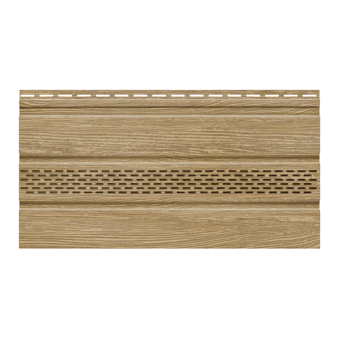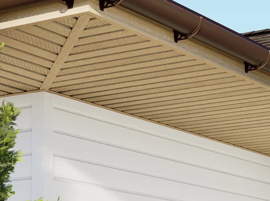 Помимо функций защиты и вентиляции, софиты помогают завершить внешний вид здания, скрывая места перехода от вертикальных поверхностей к горизонтальным. Полуматовая поверхность и текстура софитов реалистично имитируют натуральное дерево.
