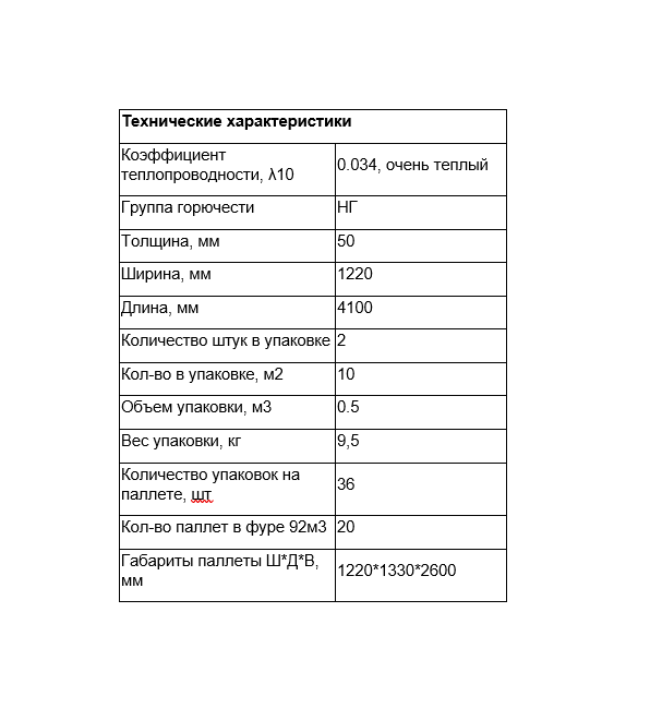 Количество в упаковке: 2 длинных плиты толщиной 50мм, 1220х4100мм